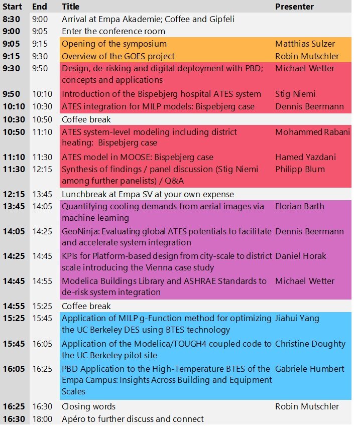 The Geothermal-based Optimized Energy Systems (GOES) project is a transnational collaboration between eight research partners from Switzerland, Denmark, USA, Germany and Austria. At the symposium at Empa, we will: